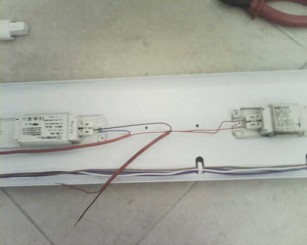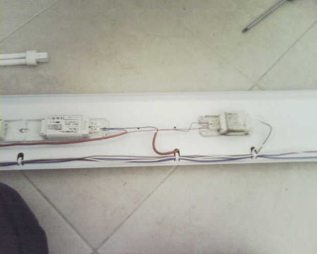 Uno de los lastres de w 36 utilicé como punto de conexión para los cables (en lugar de un bloque de terminales)