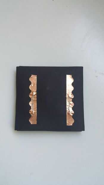 Cortar 2 tiras de papel bonito para cubrir su cartón (longitud sólo tiene que ser más largo que el cartón es amplio y ancho tiene que coincidir con el ancho del cartón--2,75" para mí aquí). Envolver el cartón como se muestra en las fotos (ver las notas en las fotos para mejor detalle). Añadir cinta de cobre en la parte superior los cables para mejor contacto con cinta de cobre de los cubos.