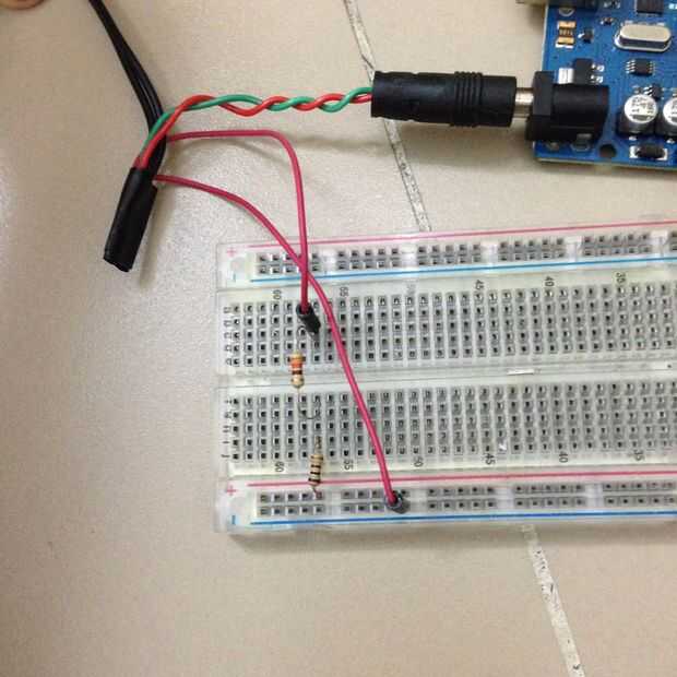 No sé la mejor manera de poder todo. Cuando los LEDs los 3.3V en el Arduino, se ilumina pero el servo no se mueve como él suppost a. Así que conecto los LEDs directamente al adaptador de 9V a través de un resistor. A pesar de que sólo necesita 375 ohmios, lo conecto a 400 ohmios en total. Los LEDs no está en plena capacidad, pero está todavía bien.