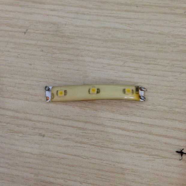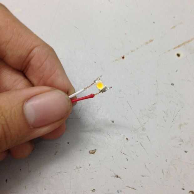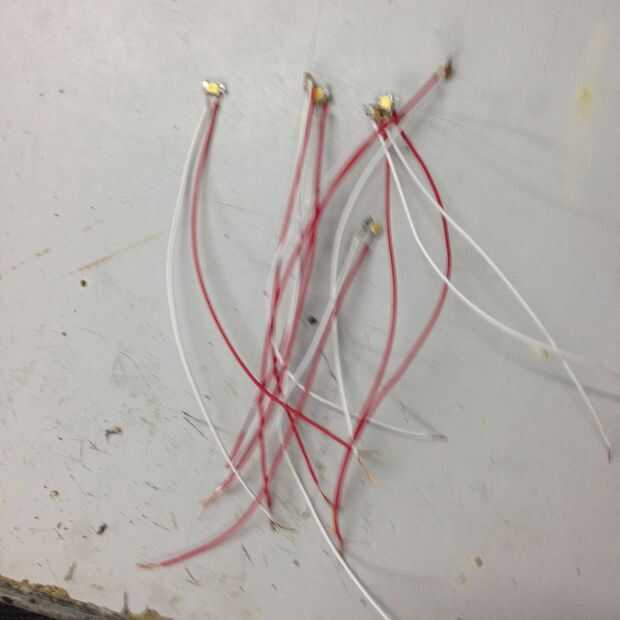 Estoy usando una tira de LED para la luz. Corte el LED y la soldadura en algunos cables. He utilizado 8 LED ' s: 2 para cada pental media y 1 para cada pétalo de outter