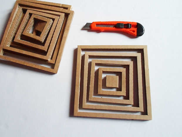 Usando un cutter y una regla, cortar todos los marcos es muy precisa y, a partir de uno mayor, mantener 1, 3, 5, 7 y la pequeña plaza. Usted puede poner a los demás a un lado *.