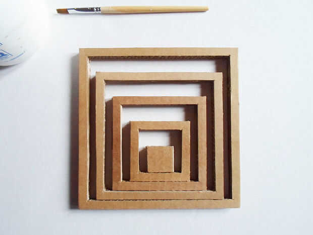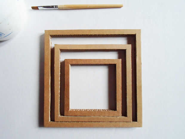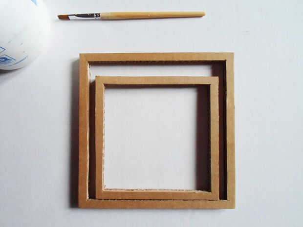Así que pegue la parte inferior del marco en segundo lugar más grande para la parte inferior de la estructura más grande, asegurándose de que al centro una pequeña tanto como usted puede.