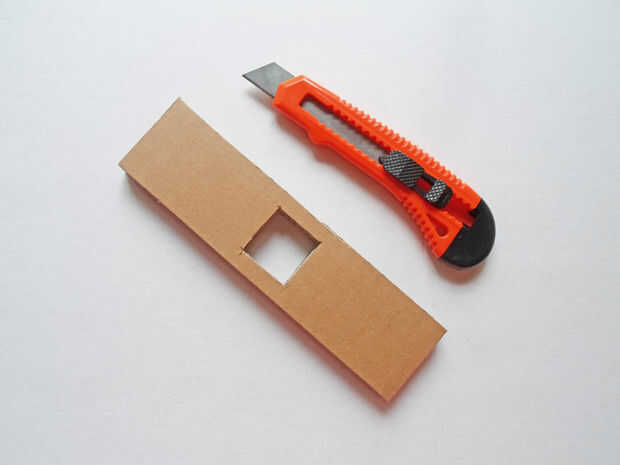 Ahora cortar todo con un cortador, incluyendo la pequeña plaza que finalmente te eliminas. Será el agujero para el zócalo del bulbo.