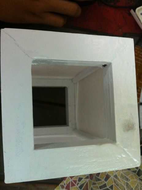 El marco blanco es el más pequeño. Debido a que i vamos a usar una especie de patrón moderno papel translúcido, utilizar pintura en aerosol blanca. Dimensiones son 10cm, 10cm, 17cm de altura. La columna es de 7mm de diámetro. Podrá ser utilizado para otro proyecto de lámpara de escritorio.