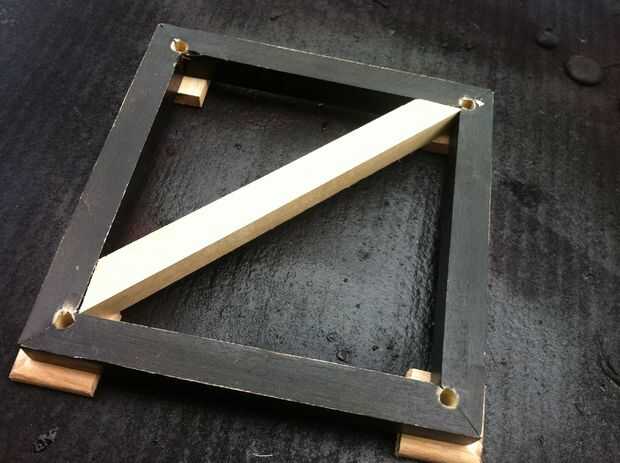Después de terminar el marco, pensé en pies para esta lámpara. Así que si usted está interesado, haga los pies del 4 y pegar en la parte inferior del marco. Luego rocíe el marco entero de madera. Ver imágenes.
