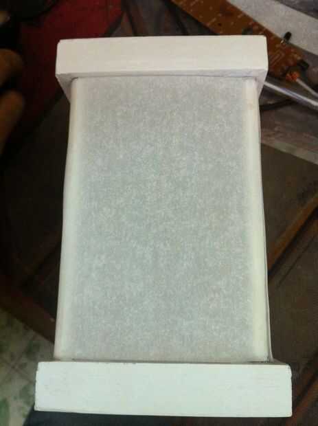 Cortar y pegar cada hoja de papel a cada lado del marco. Asegúrese de que hojas de papel son planas cuando se pegan. Se puede editar cuando desarme el marco superior.