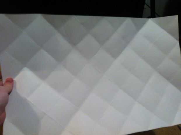 Ahora, doblar cada esquina a las marcas de centro de cada línea, después de listo el papel debe tener este aspecto. Asegúrese de que cada línea está bien arrugada.