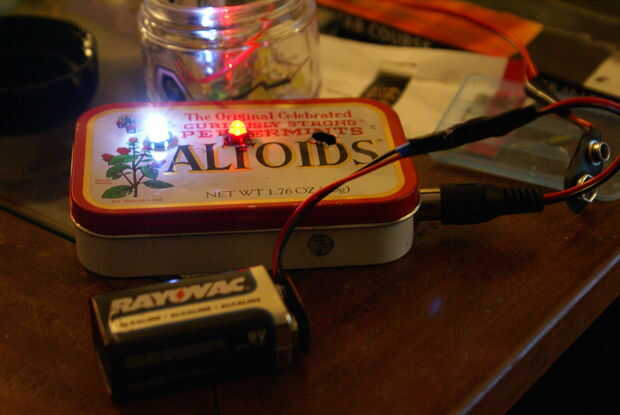 mi esperanza te ha gustado mi instructable, si usted necesita más fotos me avisan, he usado una Sony 10.2 megapíxeles réflex X 100 de la cámara, lo siento no puedo conseguir imágenes con la cinta de la cabeza en y a través de la lata altoids. Cuando la luz está encendida no son ambos en el mismo tiempo.