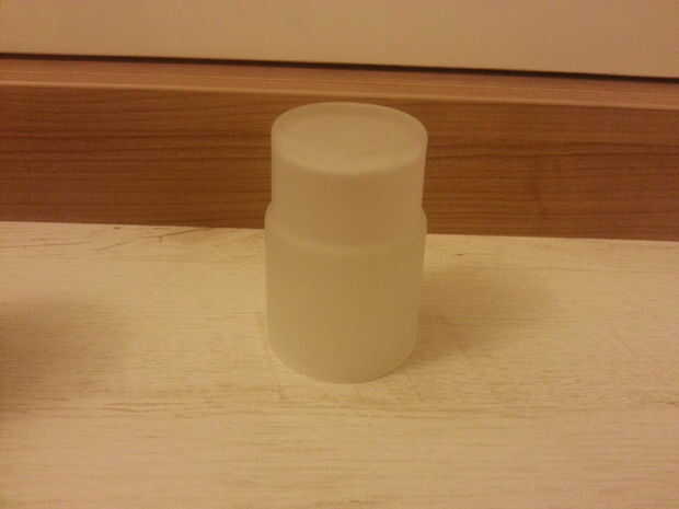 Para la pantalla de la lámpara, decidí usar este repuesto de vaso cepillo de dientes. Gafas diferentes son posibles, pero éste no necesita ningún chorro de luz que difunde y tiene paredes gruesas para robustez. Cabe dentro del adaptador de tubo; menor a 1mm...