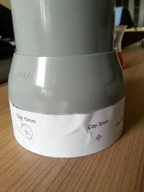 A instalación de perforación y carga agujeros precisamente en el cuerpo, preparada una plantilla de papel y envuelva alrededor de él.