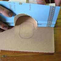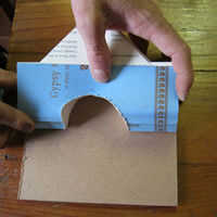 Doble las cubiertas exteriores del libro por la mitad, como lo hizo con la primera página. Plaza el libro sobre la madera y luego marque al tamaño, el tamaño libre del libro debe ser igual a la de la Masonite. Embellecedor del tablero de masonite exceso usando su juego si es necesario.