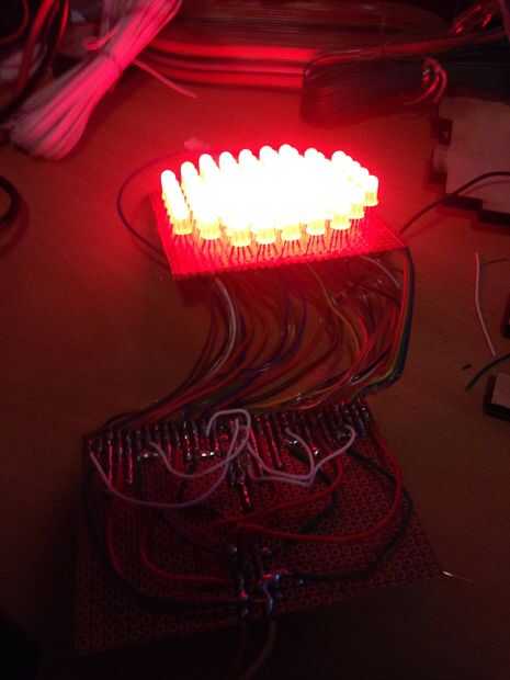 Para ello tienes que crear una nueva placa experimental con el mismo tamaño que la has usado para soldar los leds a. Una vez que termines que usted puede hacer cuatro filas para conectar los diferentes colores. Asegúrese de que usted tiene un cable que sobresale de las filas que son lo suficientemente largos para alcanzar a través de los agujeros en la caja grande.