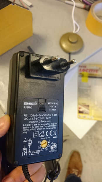 La lámpara viene con 120VAC así que tuve que usar un 230VAC de 12V ya que vivo en Francia