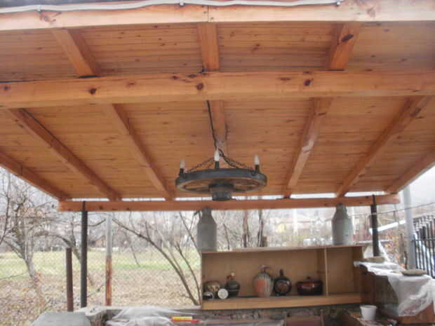 la idea de la araña vino a mí porque en la yarda de mi novia ha hecho un refugio grande prevista para una barbacoa con una mesa grande para toda la familia puede reunir. Pero por ahora se hace sólo la parte de la vivienda. Se hace como en los viejos tiempos - refugio de madera, pared hecha de piedras, cosas de barro. Todo lo que quedaba era el rayo. Así que toda la escena me llevan a este tipo de lámpara.