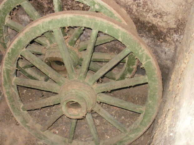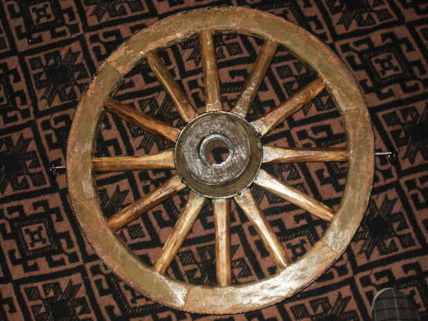 Ruedas de carro de madera decorativo añadir rústico, país o decoración occidental habitación o paisaje.Una rueda de carreta decorativa tradicional consiste en normalmente concentrador, radios, felloe y acero del neumático. Pueden ser natural, antigüe