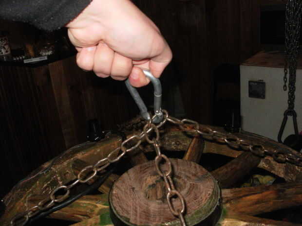1. De 1/2" madera contrachapada cortadas seis discos 40" de diámetro. Una forma fácil de hacerlo es aclavar un clavo en el centro de la madera contrachapada y atar una cadena a ella (sin apretar para que sehará girar), atar el otro extremo a un