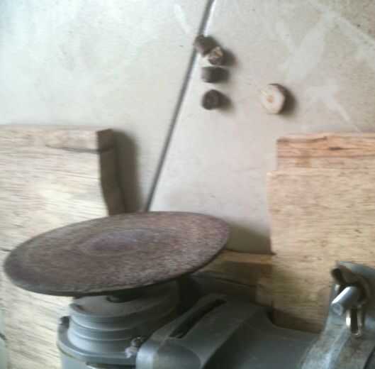 Utiliza un disco de corte de metal para cortar las ramas más delgadas y que arena tienen quemada las madera rodajas (utilizando la hoja de sierra en el molino sólo arruinó las ramas)