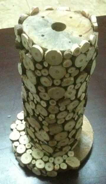 toma sus ramas cortadas apagados y corte rodajas de madera en diferentes espesores... la variedad más... el mejor se ve. Es más fácil si se corta con sierra caladora y un fino corte... entonces no tienes lo de la arena.