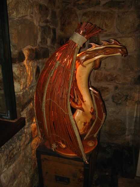 Escultura/lámpara decorativa hecha a mano. Soporte se hace de roble y dragón es