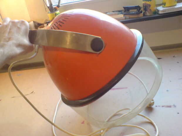 en este video gire a un viejo de pelo secador (el auricular clase, como en un salón) en una lectura lámpara de la lámpara/acento con almacenamiento de alcohol. ¡ saludos! -tim