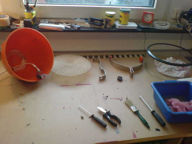 Como dice el titulo de este paso: lo desarma! Decidir qué piezas a usar y que lanzar. Me deshice del motor y la calefacción. Dan el resto una buena limpieza. Abrí el interruptor con un pryer para comprobar las posibilidades de la iluminación. Cuatro posiciones eran posibles: todo apagado / / todo en / / 1 + 2, 3 de / / 1 + 3, 2
