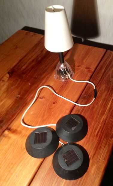 50 cm de acorde, puede tomarse de una vieja lámpara u otra cosa que no está utilizando. Tratar de encontrar un acorde más fino si quiere poner los paneles solares en el exterior.