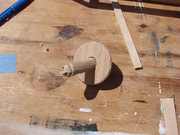 Para proporcionar apoyo adicional, hacer un todo en el centro de la abertura del módulo y ajuste el agujero usando papel de lija para obtener un ajuste apretado. Asegurándose de que el tubo en ángulo recto a la lámpara, pegar el círculo de apoyo adicional a la placa base.