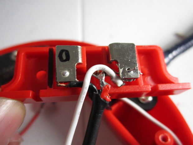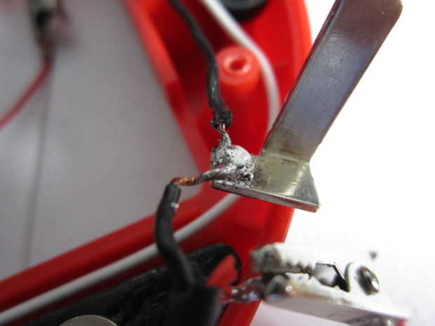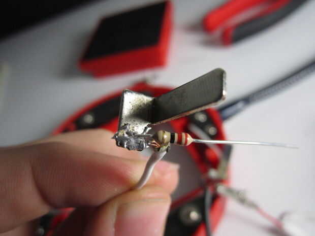 La soldadura de la resistencia de 22 ohmios en el lado positivo del conector. Entonces lo adaptadores cable positivo a la resistencia de 22 ohmios.