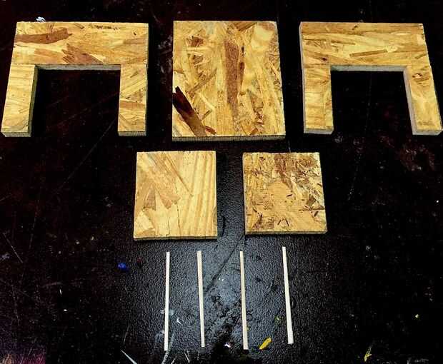 Esta estructura es básicamente un tablón de madera cortada en 3 pedazos donde 2 de esas piezas tienen formas más pequeño corte fuera de ellos