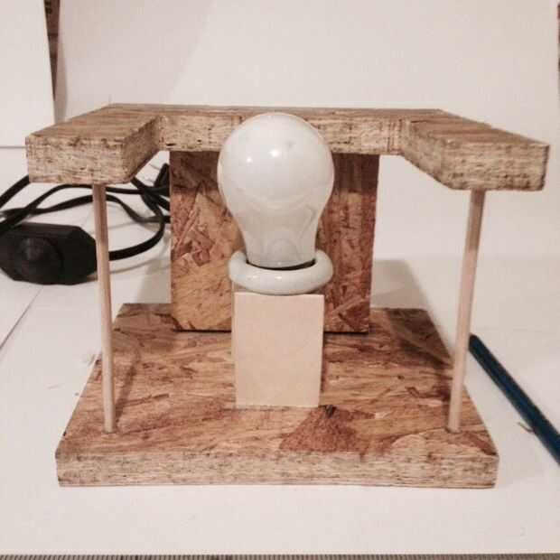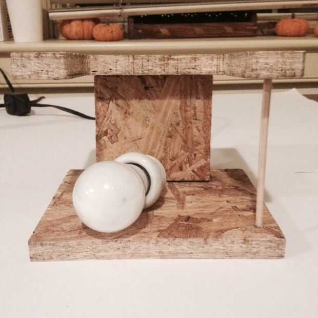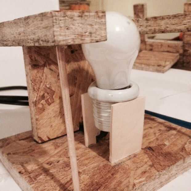 los dos trozos de madera pequeños sosteniendo la bombilla son 2 pulgadas de altura y 1 1/2 pulgadas de ancho estos pedazos de madera ayuda a mantener la bombilla en su lugar y evitar que la bombilla se caiga