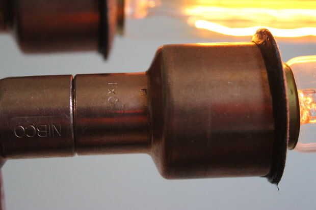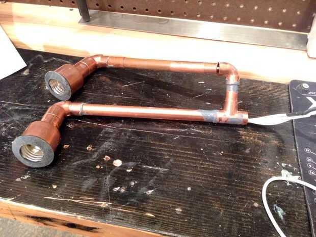 La pepita de cobre que utilizaba era 1/2. El acoplamiento que encajan perfectamente para la lámpara was1-1/2 en x 3/4-en cobre acoplamiento conexión Slip. Pude meter la lámpara simplemente correctas y poner gel super pegamento en establecer en su lugar. Luego usé un fieltro como pieza que viene con el accesorio para ocultar la parte blanca y darle un mejor aspecto.
