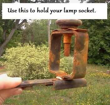 Se necesita una pinza para sujetar la bombilla. Elegí algo que saqué de la bolsa de desecho en Durham, Carolina del norte, pero cualquier abrazadera que se utiliza para colgar tubería funcionará, siempre y cuando tenga una base que puede adjuntar al arma, o que se forma sobre su zócalo y manténgalo en el lugar.