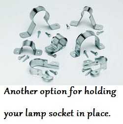 Se necesita a algún tipo de abrazadera en forma de U para sostener el cable de la lámpara. He utilizado un gancho de tubo de arillo. Por favor, ver foto. Éstos vienen acero y cobre. Mía era de acero, pero también he utilizado cobre-plateado.