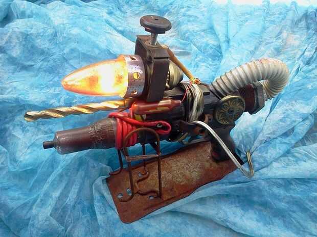 aquí es mi tercer proyecto steampunk llamado: "Outdorlamp de rayo de Plasma". Como un científico loco que necesita tal plasma beam luz Protéjase contra moskitos grande o lo que sea vendrá unexpecpactliy en su tienda.Esta película le da una impre