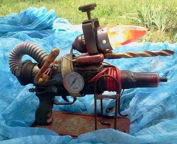 Este Raygun fue realizada utilizando objetos que se encuentran en mi papelera de bits y sacudidas. Aunque hice uso de un torno, gabinete de chorro de arena y prensa de perforación durante la construcción se puede hacer algo similar utilizando herrami