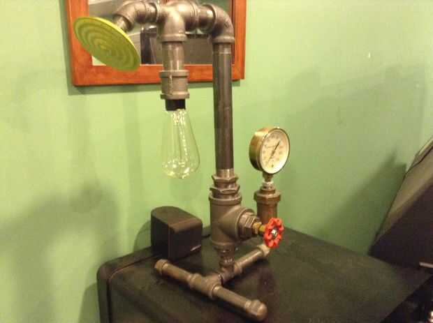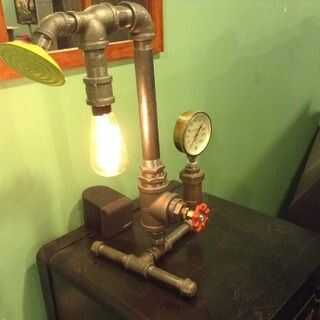 hace unos meses encontré esta lámpara temática steampunk genial en la sección de separación muy reducidos de mi local de cama, baño y más allá. De US$ 10, no me pude resistir!  Una gran característica de este estilo retro iluminando el dispositivo es