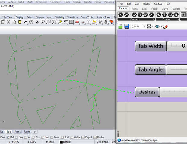 Puede seguir adelante y ocultar su tira al horno (el botón de la bombilla) para que sea más fácil ver las líneas. Ahora tienes sólidas líneas de corte y rayado doble líneas.