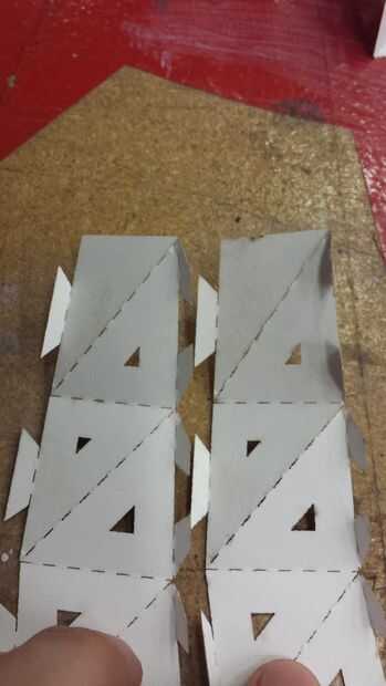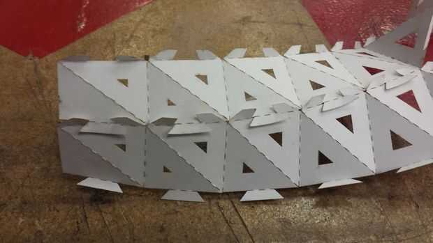 Ahora que estás cansado de doblar, puede empezar a asociar tus franjas.  Cada tira engancharán al lado empujando la lengüeta única entre las dos lengüetas más pequeñas.