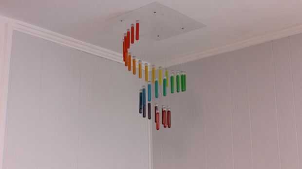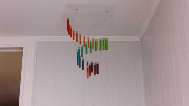 Hace un tiempo recogí un montón de tubos de ensayo de vidrio que fueron siendo lanzados hacia fuera. En el momento no tengo un proyecto en mente para ellos pero pensé que podría venir para arriba con alguna forma de utilizarlos. Luego más tarde me encontré con un diseño de usuario de Etsy PaniJurek para una lámpara de araña hecha de tubos de ensayo que fueron llenados con agua coloreada. Me gustó la forma en que se pueden utilizar los tubos de ensayo para hacer cualquier patrón de color que desee. Así que decidí hacer mi propia versión del proyecto.