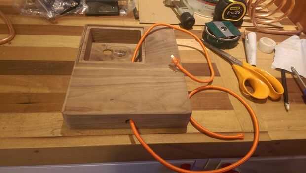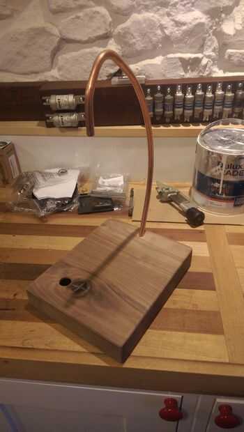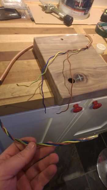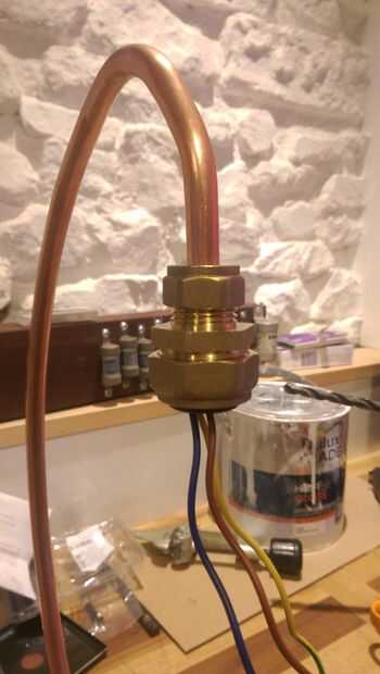 Después de tirar el cable en exceso a través de usted puede caber el tubo de cobre en la base. Entonces tiré del cable la base que todavía está en su estado flexible cubierto.