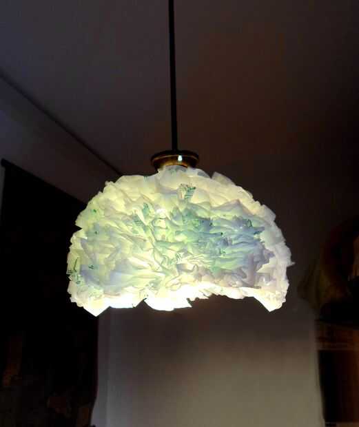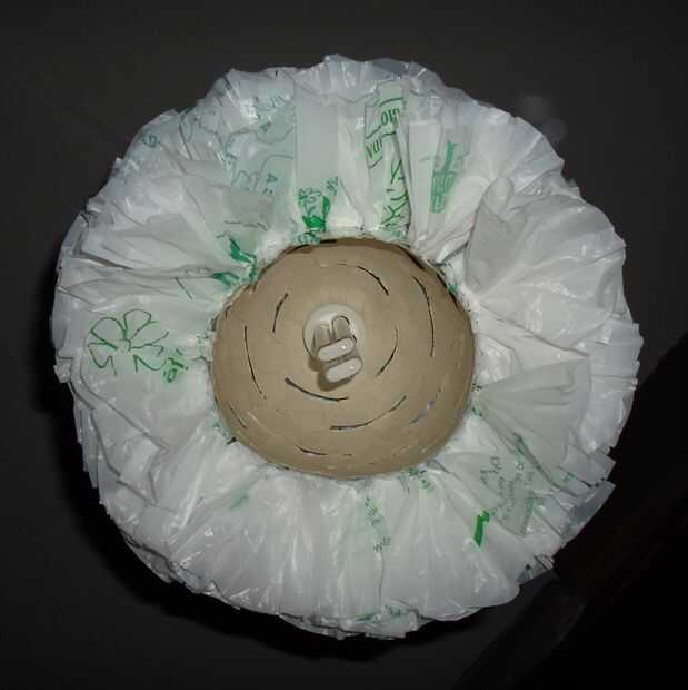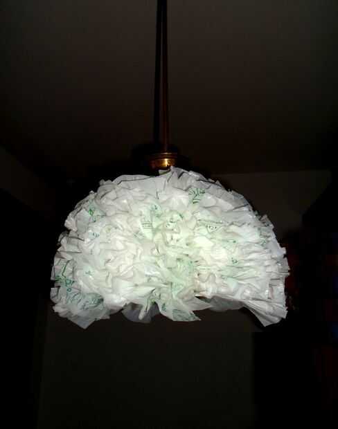 apuesto a que usted no imagina lo que esta lámpara se hace de! Al igual que todas las cosas que hago, esta lámpara está hecha con materiales que todos ustedes tienen en su casa. Periódicos y bolsas de plástico, totalmente reciclado! No te preocupes, no es tan difícil como usted puede pensar! :)
