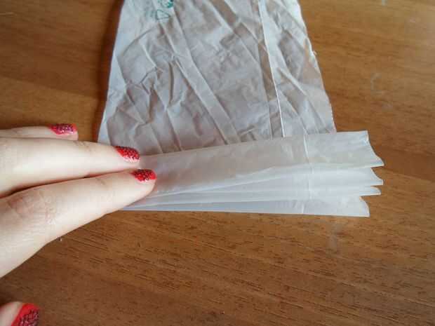 Cierre uno de los lados más largos con los dedos y sujete con una engrapadora o cinta adhesiva. De esta manera obtendrá algo como un "ventilador doble" como se puede ver en las fotos.
