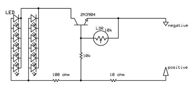 Este circuito detecta la oscuridad y enciende el LEDPaso 1: Componentes necesarios:LDR - 110 k trimpot - resistencia de 1 o 10 kresistencia de 1 k - 2BC 547 transistores - 2LED - 1batería - 9vPaso 2: Diagrama del circuito esquemático del Sensor oscur