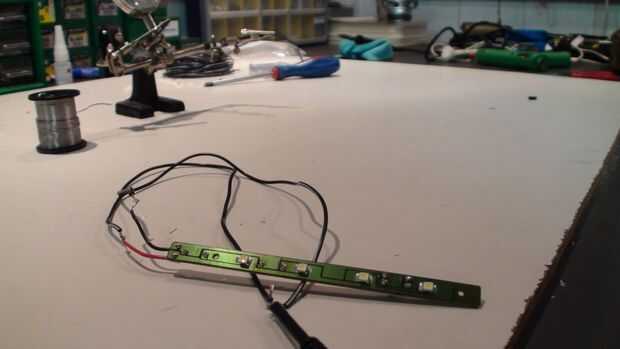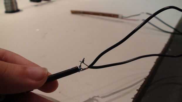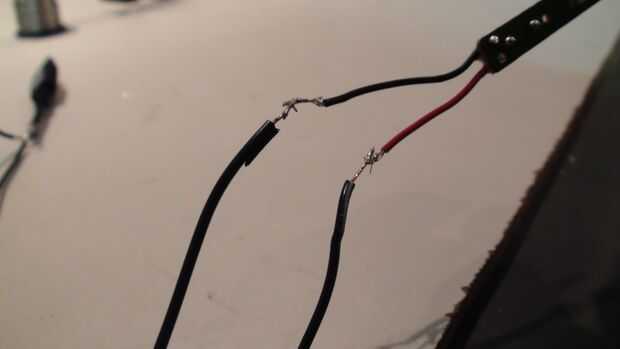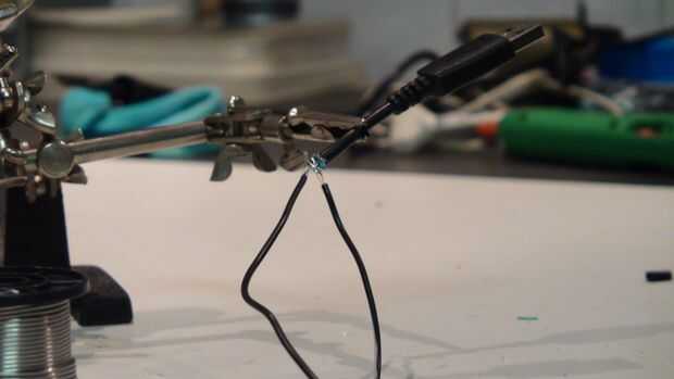 Luego cortar dos piezas largas de cable y los extremos de la raya. Soldar un cable al cable positivo de los LEDs y otro cable al lado negativo. Luego con el USB y el cable de banda. Verás que hay muchos alambres pero lo único que necesita el rojo y cable negro (positivo y negativo) así que corta otro. Solde el cable positivo del circuito al cable rojo del USB y hacer lo mismo con la otra. A prueba.