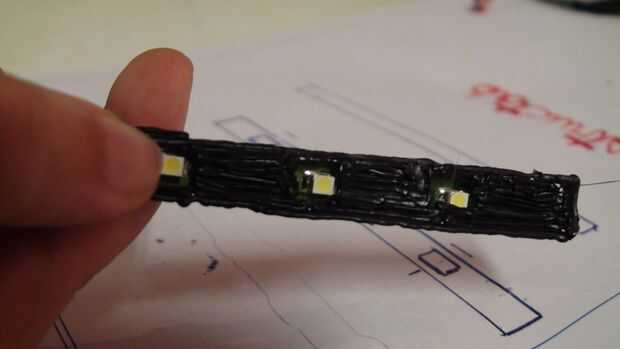 Primero dibujé el diseño y me aseguré que todo estaba correcto. Luego con la 3Doodler empecé la cubierta por piezas de impresión. Hice 2 lados, la parte superior y la pieza de LEDs. Cuando terminé me aseguré que todo cabe y con la pistola de pegamento caliente pegue la cubierta para el circuito de LEDs. Como se puede ver también hice otras cosas con el 3Doodler;).