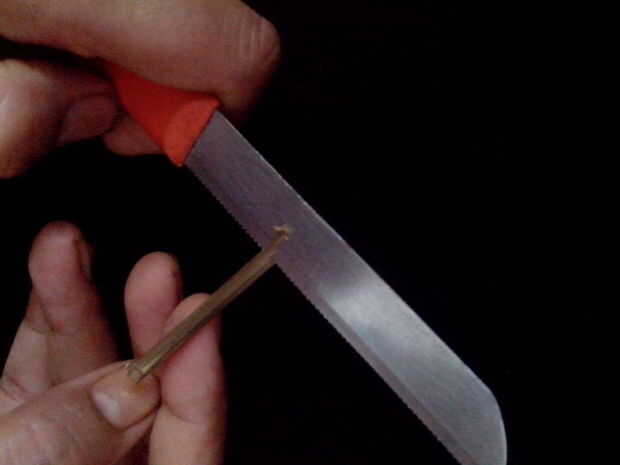 Pele apagado la capa superior para que usted obtenga la madera suave interna y cubierta externa.