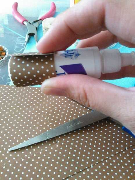 cortar una franja lo suficientemente ancha para su cortina, es aproximadamente de 4 a 6 pulgadas de largo. Envuelva el papel alrededor de una botella pequeña, poner un poco mod podge en el papel luego sellar la costura con un poco más podge mod. Que cuando pasemos al siguiente paso.