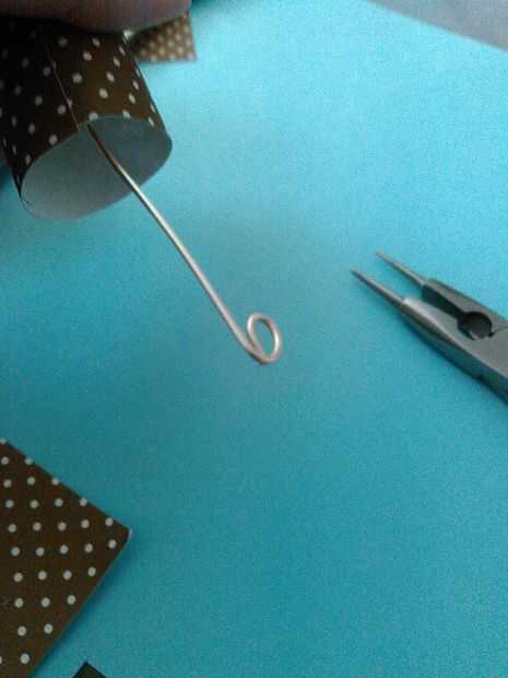 Usando las pinzas, tuerza la parte superior del cable, esto será en la parte superior de la lámpara. El alambre de gota a través de los agujeros que asomó en los puentes a la sombra.