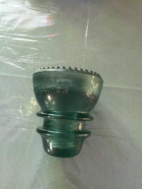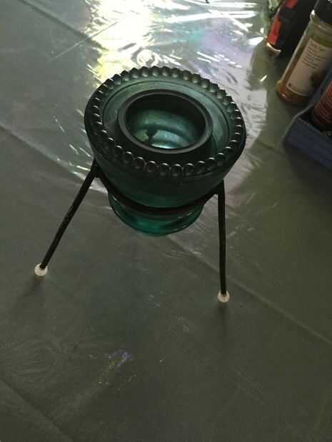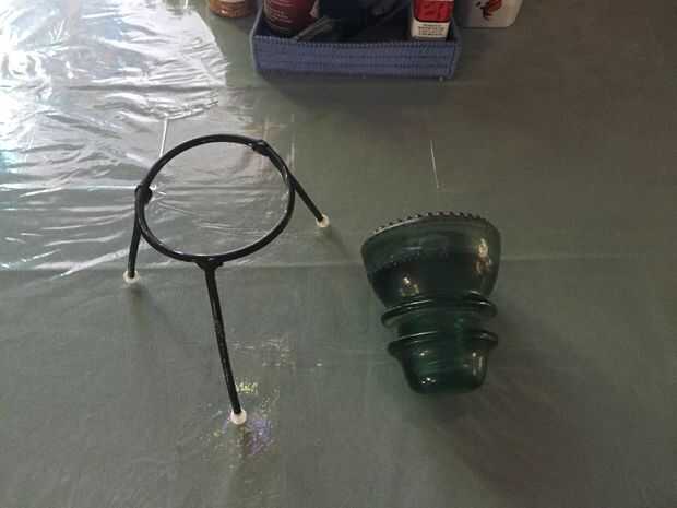 Tuve algunos 3/16 freno línea izquierda encima de mi carro, así que hice un trípode rápido soporte para uno de los más grandes aisladores de vidrio verde.