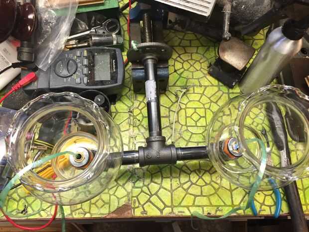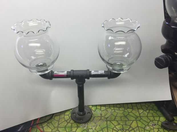 Resulta que cortan realmente rápido y fácil. El tubo de la lámpara se enrosque parcialmente en el cono de un 1/8 de rosca de la tubería pero no pude encontrar un buje de 1/8 a 1/2 tuve que 3D imprimir un par.